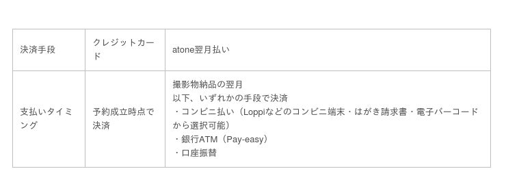 従来、fotowaのサービスを利用する際の決済手段は、予約が成立した時点でのクレジットカード決済のみでしたが、ユーザーの利便性向上を目的に後払い決済を導入いたしました。