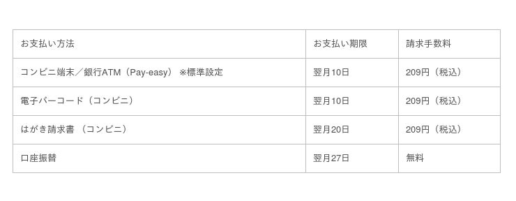 ・ご利用月のみ請求手数料209円(税込)が発生いたします。 (口座振替の場合は無料)