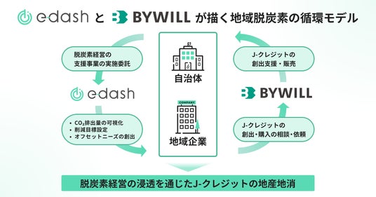 日本全国47都道府県のカーボンニュートラル実現を目指す株式会社バイウィル(本社:東京都中央区、代表取締役社長:下村 雄一郎、以下「バイウィル」)は、e-dash株式会社(本社:東京都港区、代表取締役社長:山崎 冬馬、以下「e-dash」)とともに、地域脱炭素の推進を目的として業務提携したことをお知らせします。