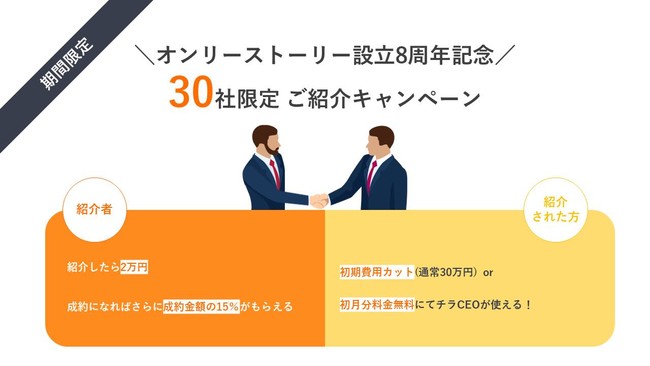 2.ご紹介より「チラCEO」のユーザーが生まれた場合、成約金額の15%をお渡し(紹介者)