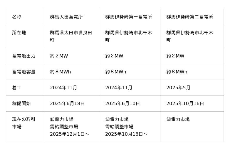 また、卸電力市場での取引より高い収益が期待できる需給調整市場での取引を、ポート群馬伊勢崎第一蓄電所において2025年10月16日から、ポート群馬太田蓄電所において2025年12月1日から開始しております。
