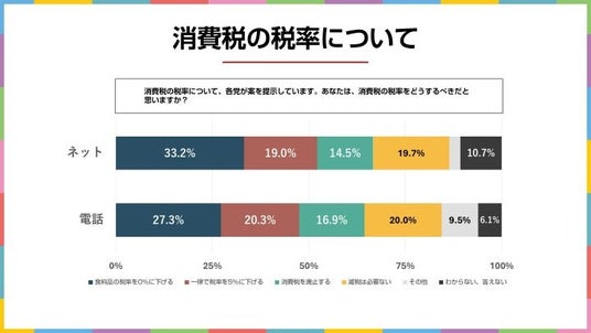 一方で、「減税は必要ない」という意見も約2割で、ネットでは2番目、電話では3番目に回答割合が多い結果となりました。