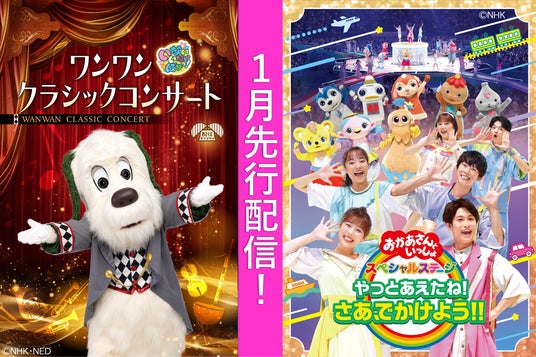 Prime Videoのサブスクリプション「NHKこどもパーク」では、「いないいないばあっ! ワンワンクラシックコンサート」を2026年1月1日(木)から、「おかあさんといっしょ スペシャルステージ やっとあえたね!さあ、でかけよう!!」を2026年1月16日(金)から先行配信!ぜひ、NHKこどもパークでいち早くお楽しみください!
