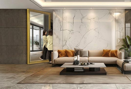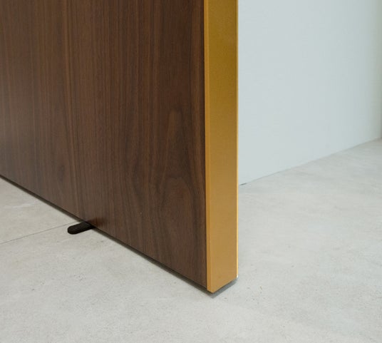 「パレス」は天井まで高さのある大きな鏡に、アール・デコの額縁で装飾を施して1枚のドアにした商品です。ドアそのものが豪華なインテリアのように、空間をゴージャスに演出します。全面がミラーになっているため、姿見としての機能はもちろん、部屋を広く明るく見せ、空間に奥行きを感じさせます。ハンドルや取っ手などはなく押すと開く機構なので、一見それがドアだとはわからず、お部屋の装飾品として空間に溶け込みます。