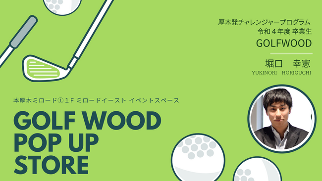 「厚木発チャレンジャープログラム」で支援した起業家の1人、堀口氏は当プログラムでゴルフアクセサリブランド「GOLF WOOD」を立ち上げました。「厚木発チャレンジャープログラム」1期生の堀口氏は2023年3月に卒業。その後、初めて期間限定ショップを本厚木ミロードにて開催しました。