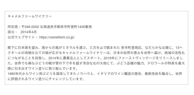 キャメルファームワイナリー https://camelfarm.co.jp/
