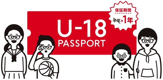 また、18歳以下の方ならどなたでも無料で「U18 PASSPORT」に入会可能。お子様の度数管理に役立つほか、フレームとレンズの保証交換期間を通常半年のところを1年に延長し、2回まで無料で保証を受けられます。視力が変わりやすい成長期の子どもが安心してお使いいただけるサービスを提供し続けていきます。