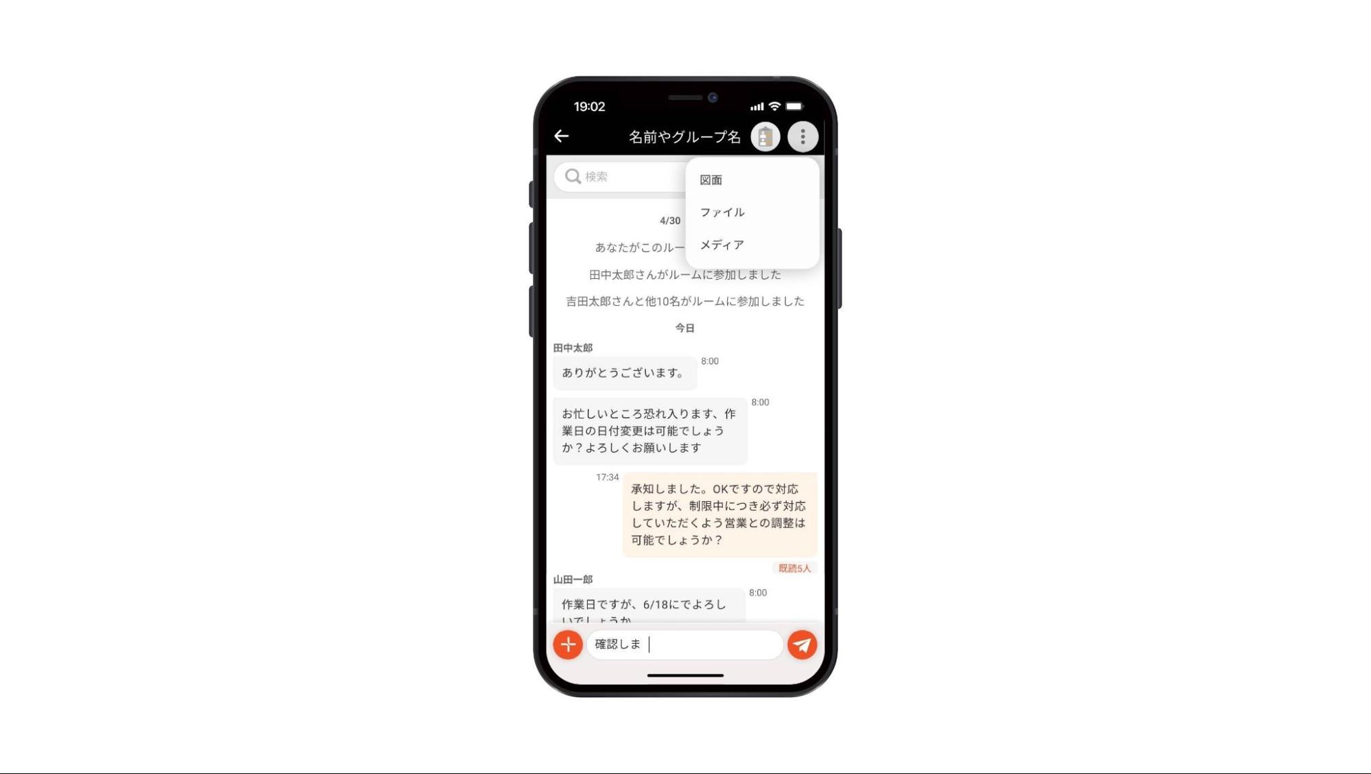 電話などのように「繋がるまでかけ続けなければならない」情報伝達と異なり、チャットにテキストや写真などの画像を添付して情報伝達ができるため、コミュニケーションが明確になります。