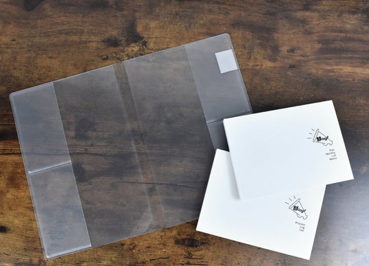 ハードカバータイプの手帳を2冊収納できる透明カバー 立ったまま記入する事ができる