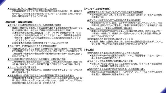 関係各所に対し本提言をベースとした働きかけを行うとともに、本年6月13日に閣議決定された「規制改革実施計画」に位置付けられた関連する項目等の確実なフォローアップを求めてまいります。