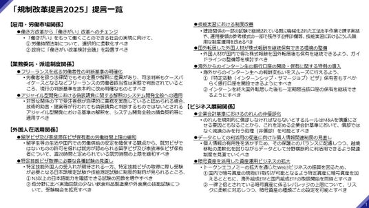 一般社団法人新経済連盟(所在地:東京都港区、代表理事:三木谷浩史)は、2025年9月10日、「規制改革提言2025」を公表しました。