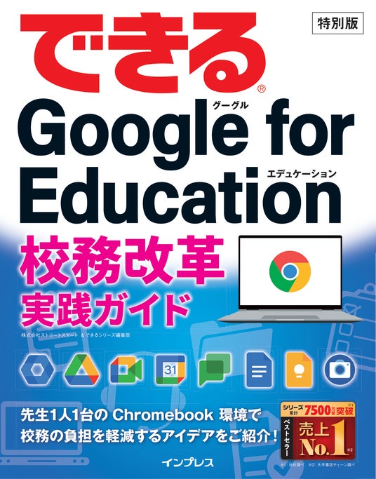 セミナーご受講後、インタビューにご協力いただいた参加者様へ 『できる Google for Education 校務改革実践ガイド』をプレゼントいたします。こちらは Google for Education を用いた働き方改革をどのように進めればよいか、改革の先にはどのような未来があるのかを具体的にイメージいただける、非売品の特別な冊子です!