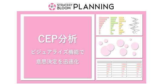本プロダクトは、博報堂DYグループのCEP分析に取り組む社員の知見を集約・型化しています。「STRATEGY BLOOM PLANNING」のCEP分析機能を大幅にアップデートするとともに、業種別のプリセット調査データの拡充、独自UIによる可視化を行い、効率的かつ効果的な指標を見渡し評価することが可能になり、CEP選定の支援を通じて、マーケティング活動の効率化と高度化に貢献します。