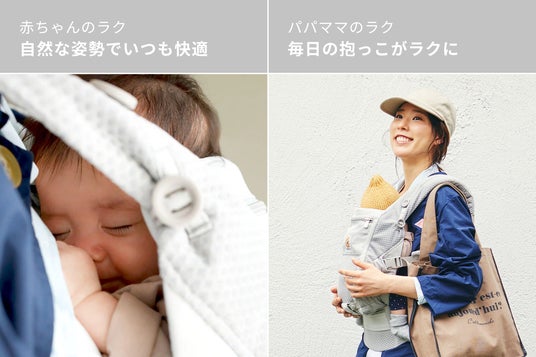 「OMNI Breeze」シリーズは、親子の快適性に加え、あると嬉しい機能が詰まったモデル。肌ざわりと通気性に優れたSoftFlex(TM)メッシュを使用し、抱っこで気になるムレを軽減。パパママと同じ方向を向ける前向き抱きが可能で、お出かけの楽しみが広がります。同ブランドの商品は、『ママリ口コミ大賞』がスタートした2018年より10回連続で受賞しています。