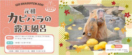 伊豆シャボテン動物公園では2024年11月1日(金)~2025年4月6日(日)まで、「元祖カピバラの露天風呂」を開催いたします。