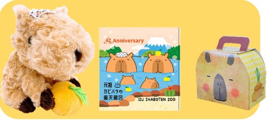LOVE湯~カピバラぬいぐるみや、カピバラクッキー、42周年デザインのタオルなど、当園オリジナル商品もお見逃しなく♪