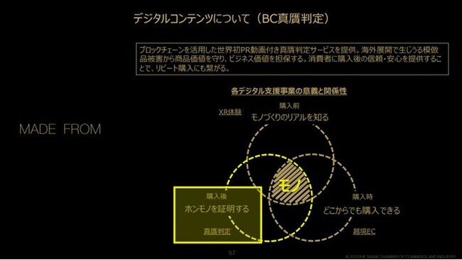 JAPANMADE社では、本イベントに置いて、ブロックチェーン基盤の真贋判定システム「HyperJ.ai」を提供し、能登地域の商品であることの真贋性を担保するだけでなく、残されたデジタルデータを活用したホンモノストーリー制作し、HyperJ IDをスマートフォンでかざすだけで、簡単に被災前の店舗や工房の様子を観ることができるようにすることで、能登の魅力を消費者に発信し、より多くの方に能登のすばらしさ、被災してしまった状況を知ってもらうことで、復興活動が活性化するよう支援して参ります。