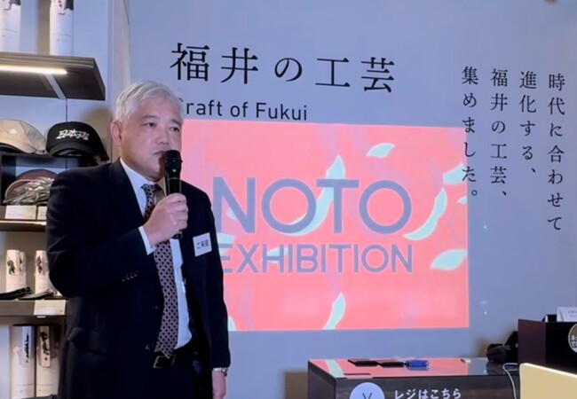 この展示会は、今年の元日に発生した能登半島地震において被災された能登地域の被災地復興に寄与するために開催され、これまで地域のモノづくりの魅力を伝えてきた鯖江商工会議所主催の「MADE FROM」と連携させることで、実物の展示会とバーチャルモールのネット展示会の二段構えで行われます。