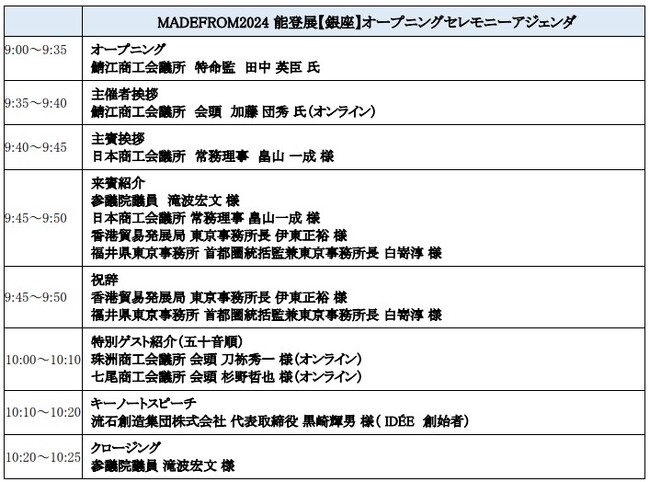 MADE FROM 2024 NOTO 銀座展 オープニングセレモニー アジェンダ