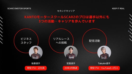 eスポーツの魅力を広げるブランドとして「SCARZ Racing」を展開。4つの企画でトッププレイヤーへの道も