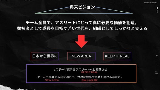 代表取締役社長の友利より、日本最多の優勝回数を誇るSCARZの輝かしい歴史と確かな実績を背景に、「eスポーツ選手をアスリートへと昇華させゲームで挑戦する姿を通じて、世界に共感や感動を届ける存在に。」という、SCARZの揺るぎない目指す姿が紹介されました。