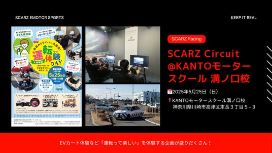 SCARZが主催する、誰でも気軽にeモータースポーツ体験ができる参加型イベントです。第一回はKANTOモータースクール 溝ノ口校にて、第二回はRED゜TOKYO TOWERにて実施いたします。