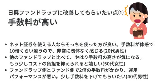 一方、改善点としては「手数料が高い」という意見が特に多かった。