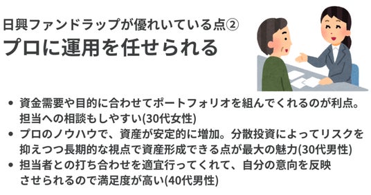 数多くある投資商品の中から、日興ファンドラップを選んだ理由を教えてください。