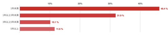 ンケートによれば、「1年未満」と答えた回答者が46.4%で最も多く、次いで「1年以上3年未満」が31.9%であった。
