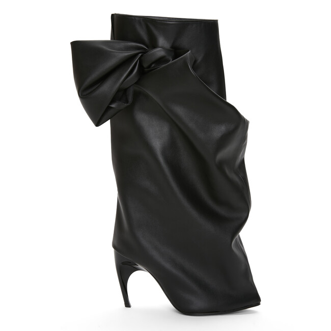 リボンがあしらわれたドレープと立体感のある、柔らかなフェイクレザーのブーツや、ゴールドやシルバー、または同系色のカーブヒールが組み合わせられたパンプスやサンダルなど、様々なデザインで生まれ変わりました。