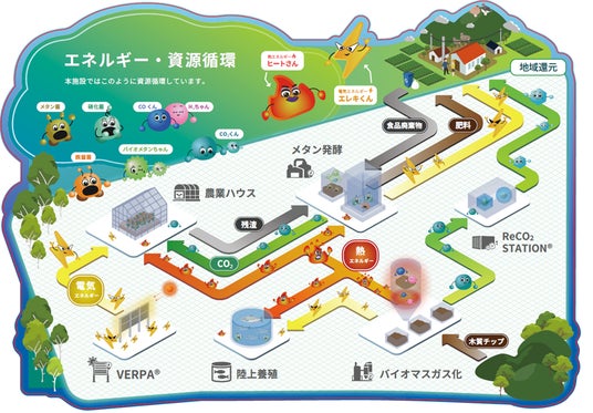 本施設は、「バイオマスガス化プラント」「メタン発酵プラント」「スマート陸上養殖プラント」「スマート農業ハウス」の4つの設備で構成。今般、全設備を本格稼働することで、未利用バイオマス資源を有効活用したエネルギーおよび電力の製造、熱やCO2の養殖や農業への利活用、廃棄物の製品化による資源循環モデルを実現します。さらに、本モデルを基盤として地域ごとの課題・特性に応じてカスタマイズし他地域への展開を目指してまいります。