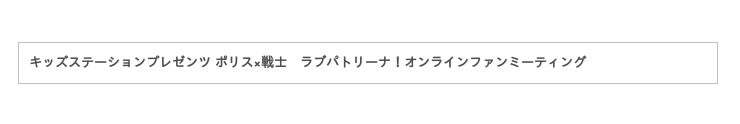 キッズステーションプレゼンツ ポリス×戦士 ラブパトリーナ!オンラインファンミーティング