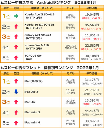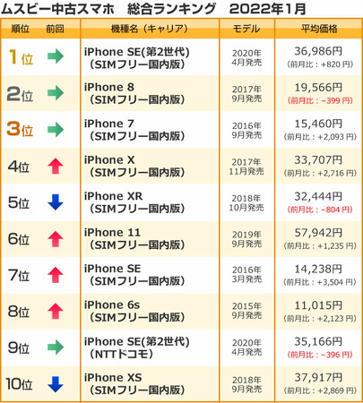株式会社ウェイブダッシュ(本社:東京都千代田区、代表取締役 河野 由紀)が運営するフリーマーケットサイト「ムスビー」(https://www.musbi.net/) の2022年1月の中古スマホ・中古携帯ランキングを発表いたします。