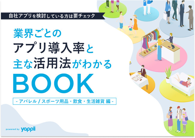 本調査ではアパレル/スポーツ用品・飲食・生活雑貨の3業界における18,805社を対象としてアプリ導入率を調査しました。資料内では上記紹介したアパレル/スポーツ用品業界以外にも、飲食、生活雑貨業界の調査結果、具体的な業界別事例なども掲載。