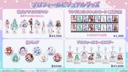 種類:全6種(電脳少女シロ、花京院ちえり、神楽すず、カルロ・ピノ、もこ田めめめ、ヤマト イオリ)