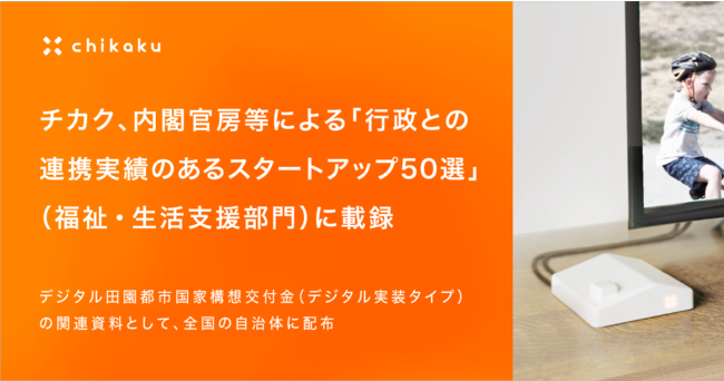 株式会社チカク(以下「チカク」)は、スタートアップと自治体との連携を促進し、地方創生×デジタルの取組を推進していくため、内閣官房等が作成した参考事例集「行政との連携実績のあるスタートアップ50選」(福祉・生活支援部門)に載録されました。