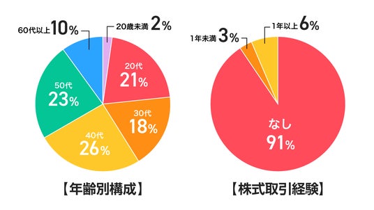 PayPay証券のNISA口座開設ユーザーは、株式取引未経験者の割合が91%、年齢別構成については20代から50代の現役世代が約9割を占めています。若い世代の方だけではなく、幅広い年齢層の資産運用初心者に支持されています。投資未経験者・初心者の方にも簡単・迷わずに直感的な操作で簡単に売買をすることができ、NISAデビューにぴったりな厳選した銘柄ラインナップを提供しています。