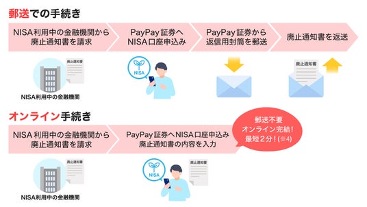 PayPay証券株式会社(東京都千代田区、代表取締役社長執行役員CEO:番所 健児、以下PayPay証券)は、2024年10月6日(※1)より、NISA口座の乗り換え(金融機関変更)手続きがオンラインで完結できるようになることをお知らせします。複雑で手間がかかる郵送手続きが不要になり、より簡単にPayPay証券で資産運用を始めることができます。