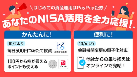 ~ 「PayPayおまかせ運用」やポイント投資でNISAを活用した資産運用を応援!日米有名企業の株も100円から買える ~