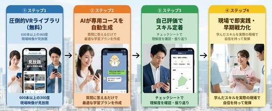 この画期的な学習体験を、より多くの方に知っていただくため、無料アカウントを作成するだけで、医療、介護、製造業、サービス業など多岐にわたるジャンルの360度映像、全600本超がすべて見放題となる「VRライブラリ」を公開しました 。導入前の不安を解消し、まずは「プロの現場」を気軽にチラ見いただくことで、VR活用の具体的なイメージを広げていただけます 。