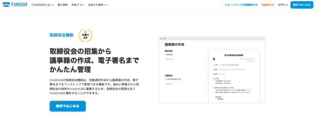 スタートアップ経営者や管理部担当者が抱える取締役会に関するお悩みを、FUNDOORが解決します。ご登録はこちらから