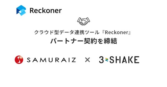 株式会社スリーシェイク(本社:東京都新宿区、代表取締役社長:吉田 拓真、以下スリーシェイク)は、株式会社サムライズ(本社:東京都品川区、代表取締役社長:谷 利太郎、以下サムライズ)と、クラウド型データ連携ツール「Reckoner(レコナー)」において、パートナー契約を締結したことをお知らせします。