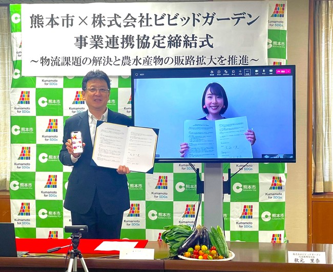 このたび、株式会社ビビッドガーデン様と熊本の農水産物・加工品の国内販路拡大に関する連携協定を締結しました。熊本市は、清らかな地下水をはじめ、豊かな自然環境に育まれた豊富で高品質な農産物を産出する全国でも有数の農業都市です。