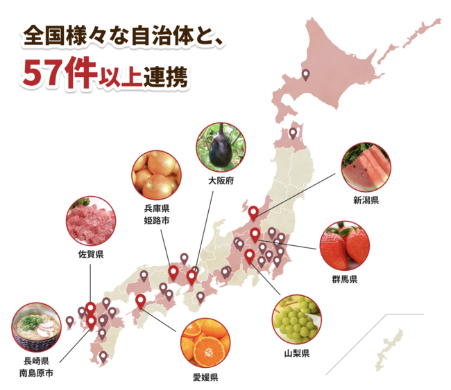食べチョクは、生産者の販路拡大のサポートをすることを目的として、全国様々な自治体と57件の連携を行ってきました。