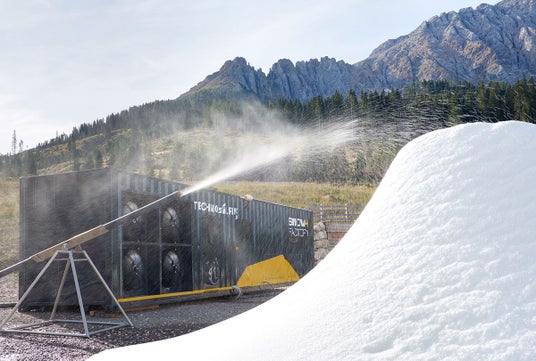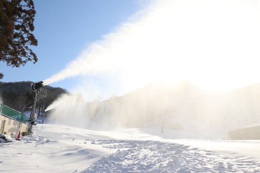 人工降雪機とは、低温の大気中に水を噴霧することで人工的に雪を作り、積雪を生じさせるための装置。大きく分けて、圧縮空気の噴射で散雪を行うガンタイプ、大型のファンを用いるファンタイプがあります。