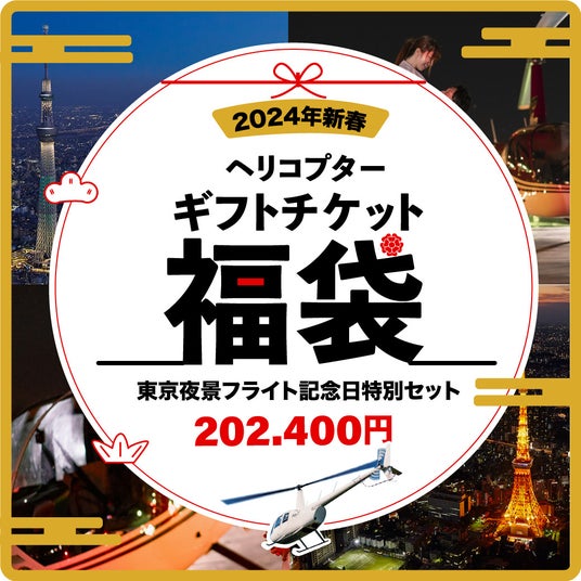 この度、2024年新春特別企画として、船橋ヘリポート発着50分ナイト遊覧と人気オプションをセットにしたヘリコプター遊覧の福袋を、202,400円で販売いたします!