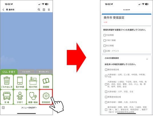 美作市のLINE公式アカウントでは、住民の希望に応じた配信だけを届ける「セグメント配信」機能を導入しています。「受信設定」とよばれる簡単なアンケートフォームに回答することで、欲しい配信カテゴリーをカスタマイズすることができます。自身の状況に合わせた必要な情報だけが届くので、市からの情報発信がこれまで以上に効果的になることが期待されます。