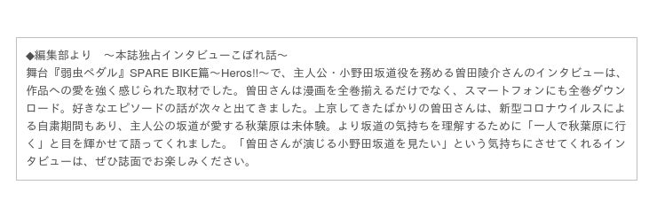 坂道を愛して、自分のすべてを坂道にして本番に臨みます!舞台『弱虫ペダル』が1年ぶりに劇場へ。