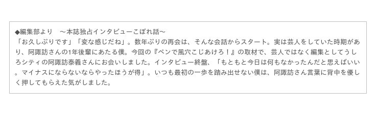 ・うしろシティ 阿諏訪泰義【今注目の人!インタビュー】