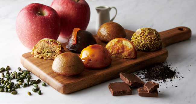 キャラメル ブール サレ、プラリネ ノワゼット、オランジュ、ショコラ、グリオット、テ ミュールの6種の味わいをお楽しみいただけます。